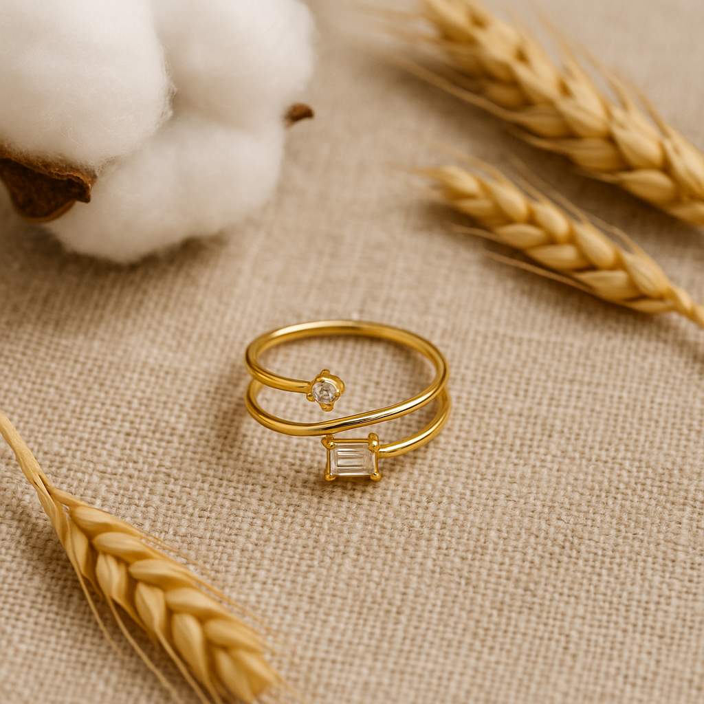 La bague Laya en acier inoxydable allie élégance et modernité avec ses deux pierres délicates : une ronde et une rectangulaire, subtilement associées. Ajustable, elle s’adapte parfaitement à votre doigt pour un confort optimal tout au long de la journée. Ce bijou minimaliste apporte une touche raffinée à chaque tenue, que ce soit pour une occasion spéciale ou au quotidien. Optez pour la bague Laya et sublimez votre style avec simplicité et distinction.