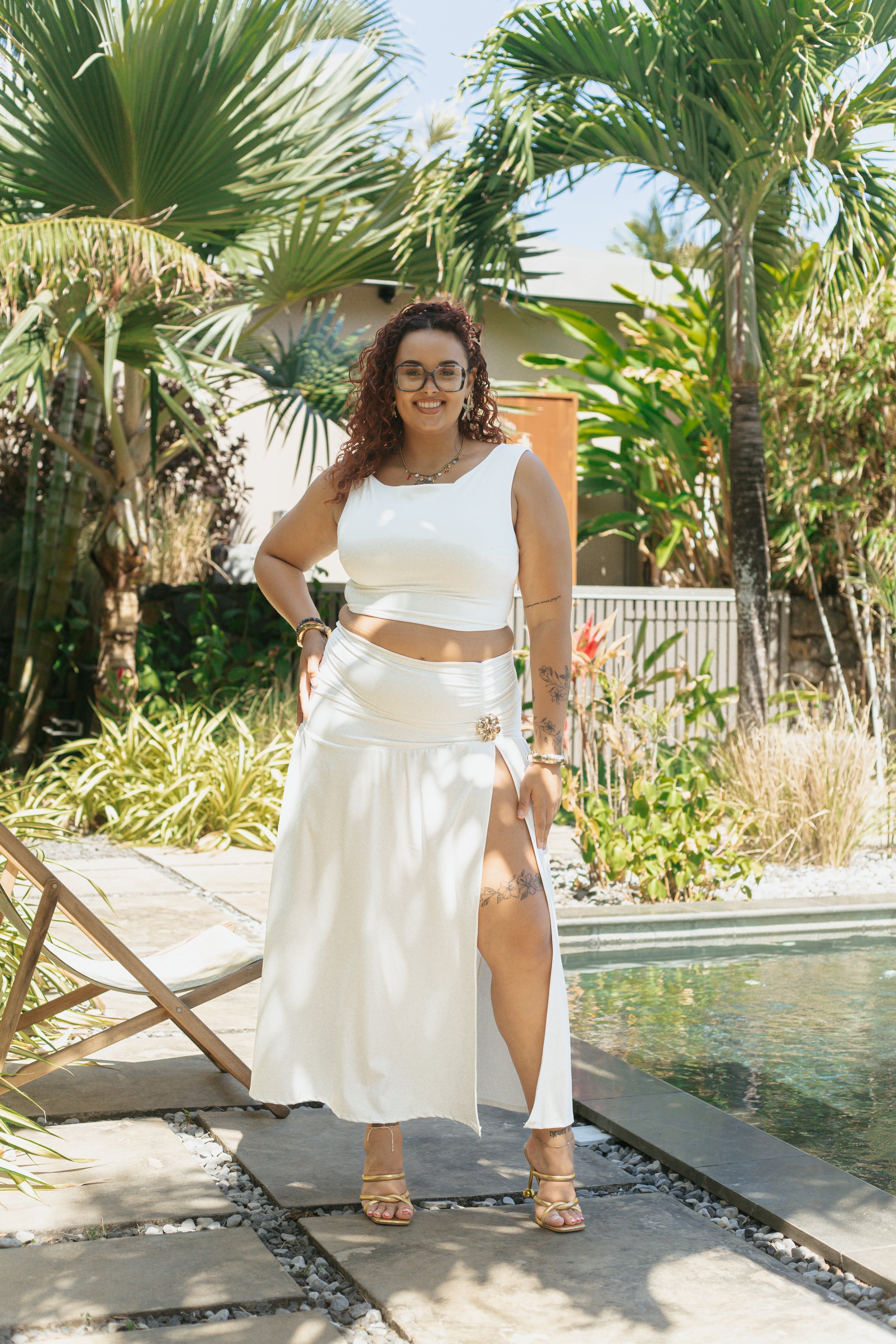 Découvrez l'Ensemble Jupe Roma, la fusion parfaite entre élégance et sensualité. Cette pièce sophistiquée combine une jupe longue avec une ouverture échancrée et drapé fluide sur le haut, créant une silhouette à la fois gracieuse et captivante. Le top orné d'un bijou chic transforme cet ensemble en véritable pépite. Idéal pour les occasions spéciales, il vous permettra de briller avec assurance et style. Une création incontournable pour celles qui osent affirmer leur féminité avec raffinement.