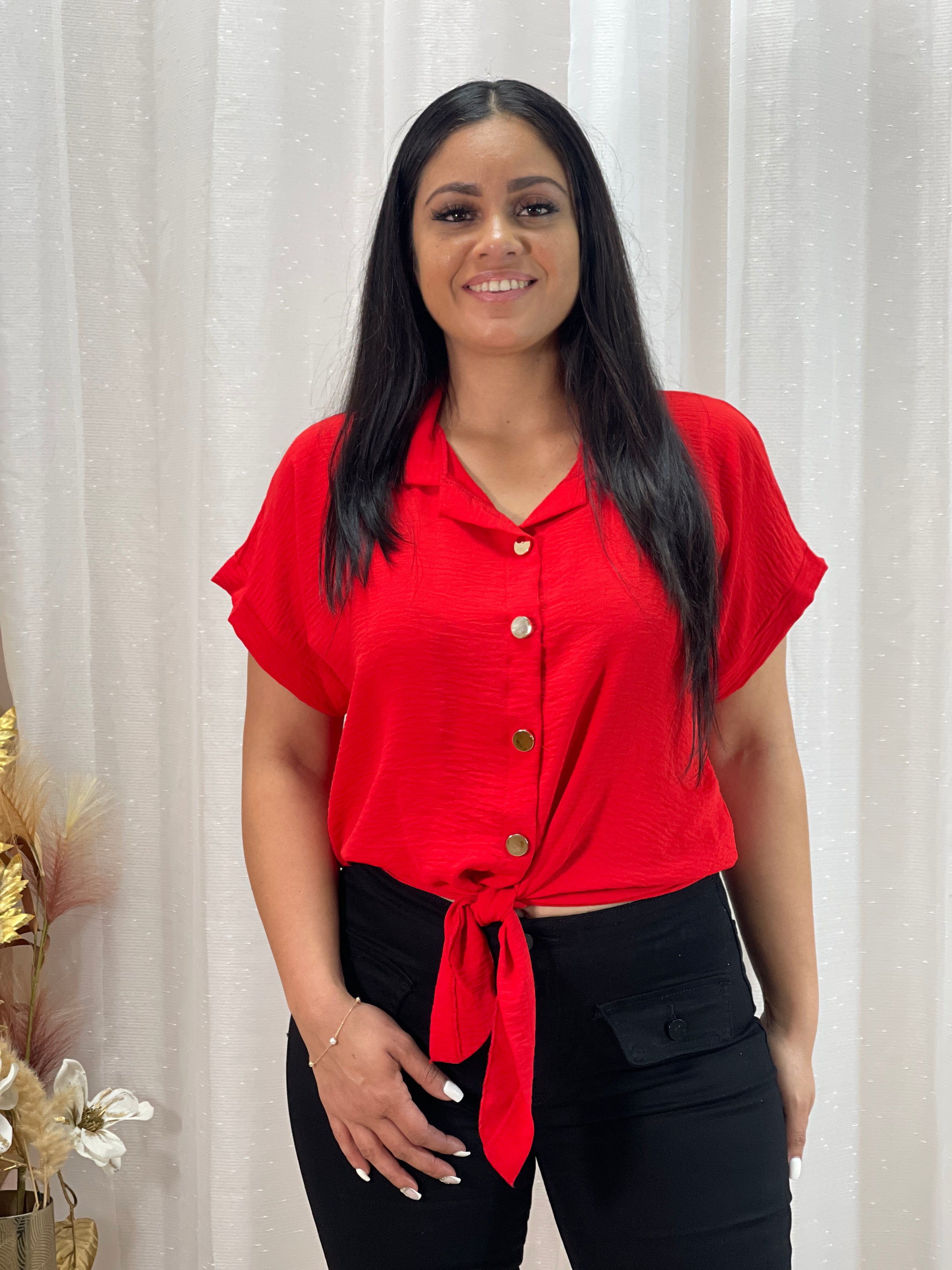 Adoptez l'élégance simple avec le chemisier Thea, un modèle uni doté d'une boutonnière délicate et d'un nœud subtil qui sublime votre silhouette. Confortable et facile à assortir, il apporte une touche raffinée à toutes vos tenues, du bureau aux sorties. Un indispensable polyvalent pour un style chic et sans effort.