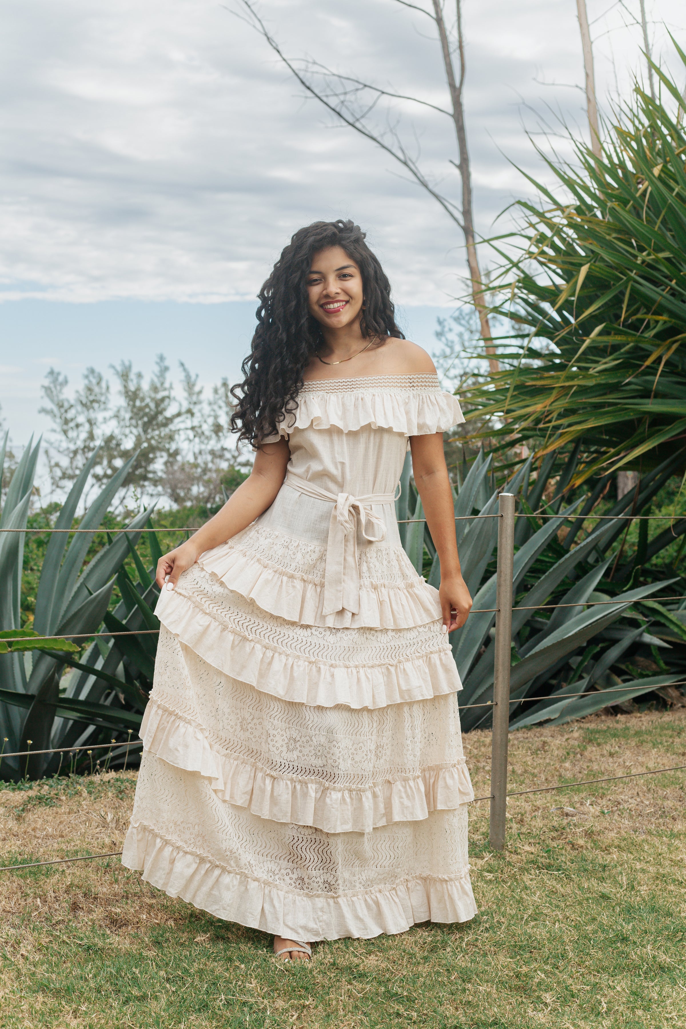 Découvrez la ROBE ALBA, une création intemporelle qui capture l'essence du style espagnol avec élégance. Cette robe longue séduisante allie volants dramatiques et dentelle raffinée pour une silhouette flatteuse et romantique. Les manches volantées sur les épaules ajoutent une touche de féminité captivante, tandis que la dentelle délicate crée une texture sophistiquée. Parfaite pour les occasions spéciales, elle transforme chaque moment en instant mémorable. Laissez-vous charmer par ce mélange harmonieux de tradition et de modernité qui vous mettra en valeur.