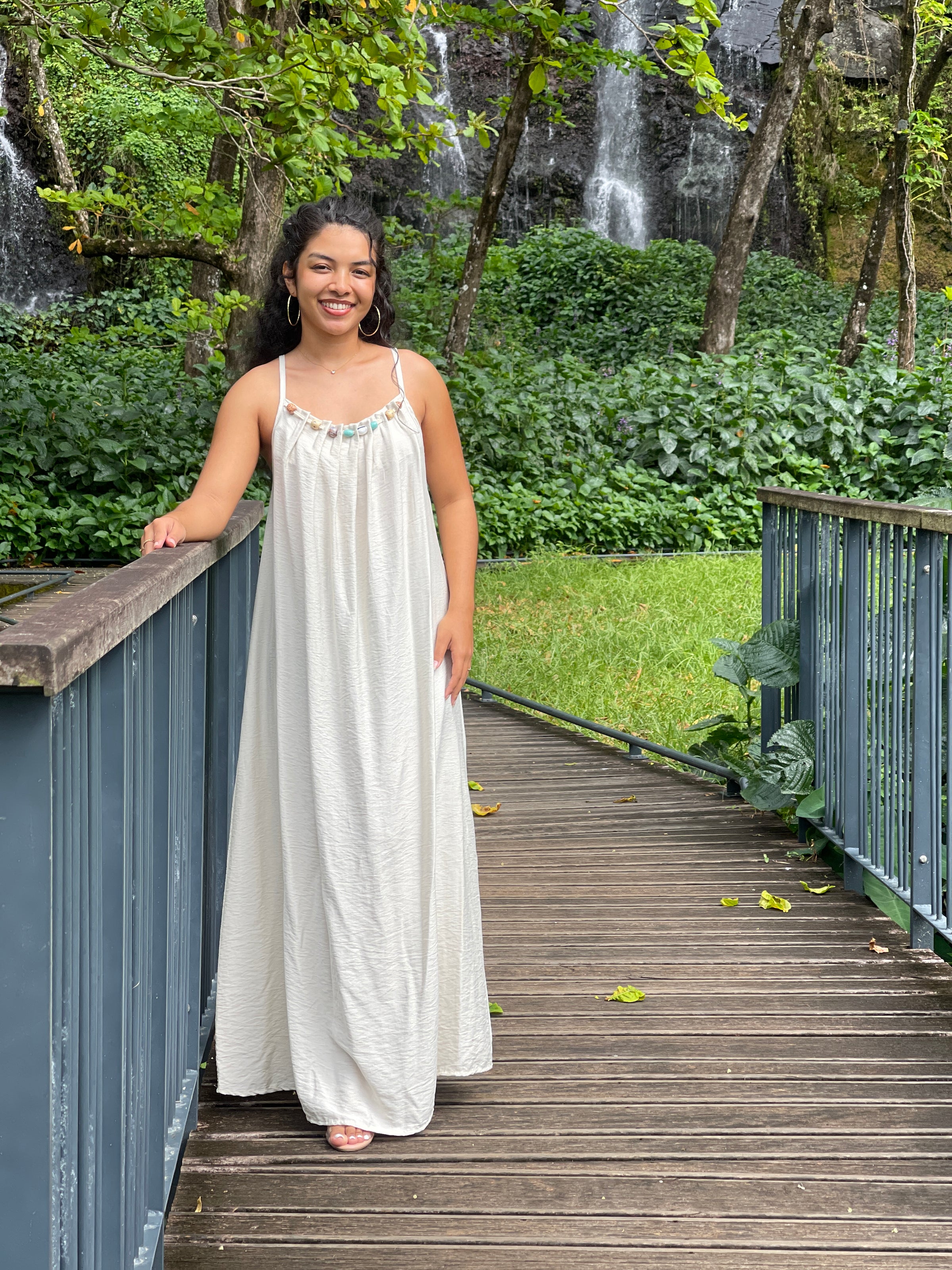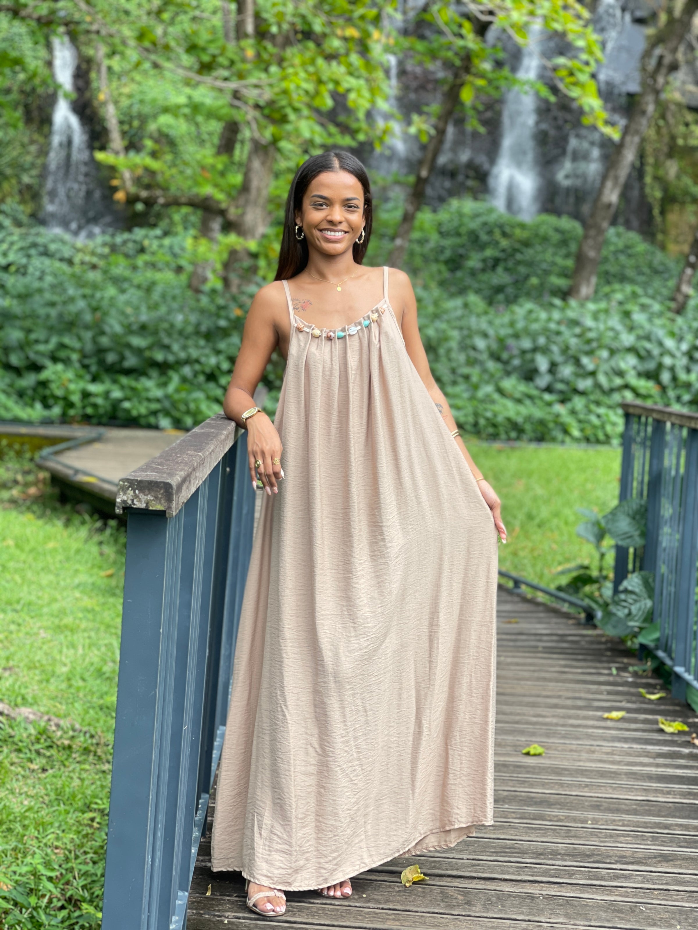 Apportez une touche d'élégance décontractée à votre garde-robe avec la robe Amy. Sa coupe ample garantit confort et liberté de mouvement, tandis que la grosse perle délicatement posée à l'avant ajoute un détail sophistiqué et unique. Les bretelles fines complètent parfaitement ce modèle, alliant féminité et modernité pour une tenue facile à porter en toutes occasions.