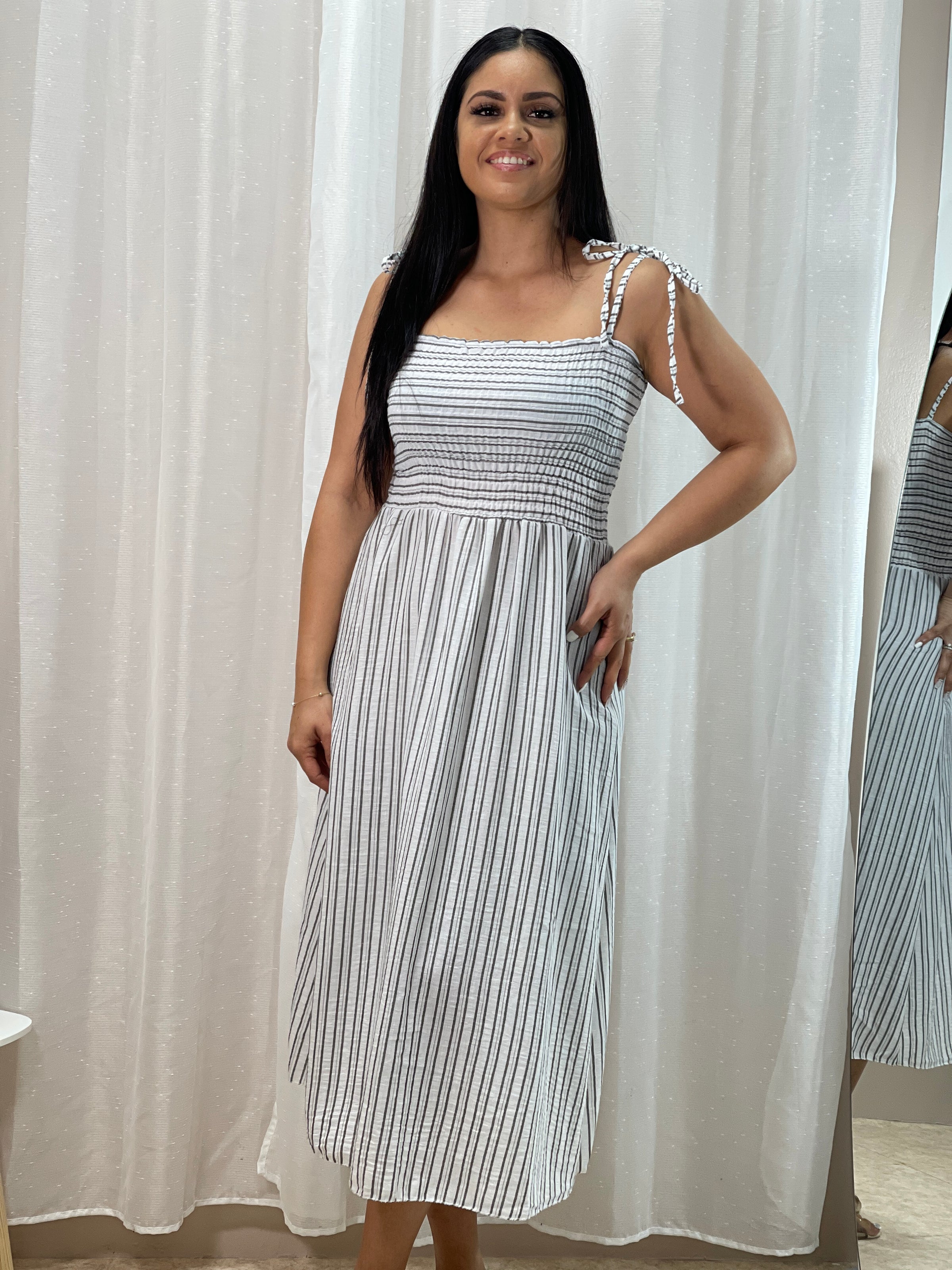 Découvrez la Robe Summer, une robe rayée aux teintes délicates. Sa coupe flatte votre silhouette tandis que les couleurs douces apportent une touche de fraîcheur et d'élégance idéale pour les journées estivales. Parfaite pour un look à la fois chic et décontracté, elle s’adapte facilement à toutes vos occasions. Adoptez cette pièce tendance pour illuminer votre garde-robe avec légèreté et style.