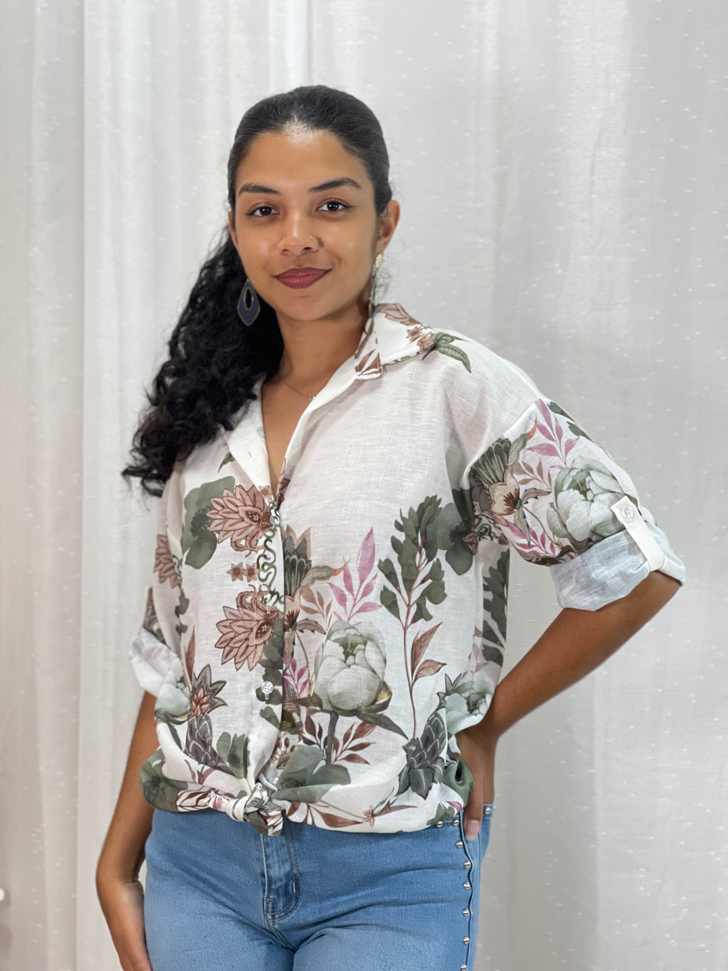 Découvrez le chemisier Floria, léger et élégant, orné de motifs floraux raffinés. Sa coupe fluide et son nœud délicat ajoutent une touche féminine et sophistiquée à votre look. Parfait pour allier confort et style, ce chemisier sublimera toutes vos tenues avec grâce et fraîcheur.
