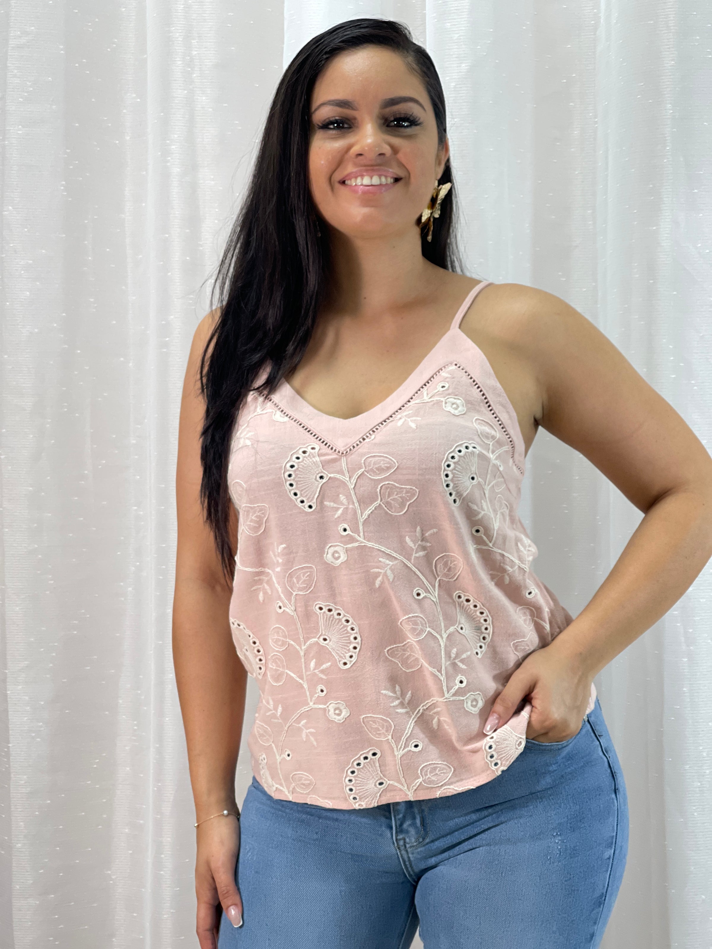 Découvrez le Top Eva, alliant élégance et finesse grâce à ses bretelles fines délicatement ornées de dessins bordés. Ce haut subtil apporte une touche raffinée à votre tenue tout en offrant un confort léger et une silhouette sublimée. Parfait pour une allure chic et moderne en toute occasion.